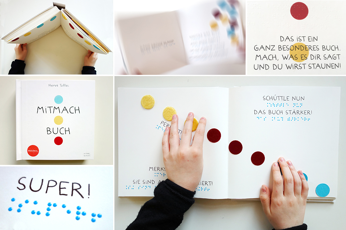 Detailansichten aus unserem taktil illustrierten »Mitmachbuch«, einer interaktiven Geschichte.