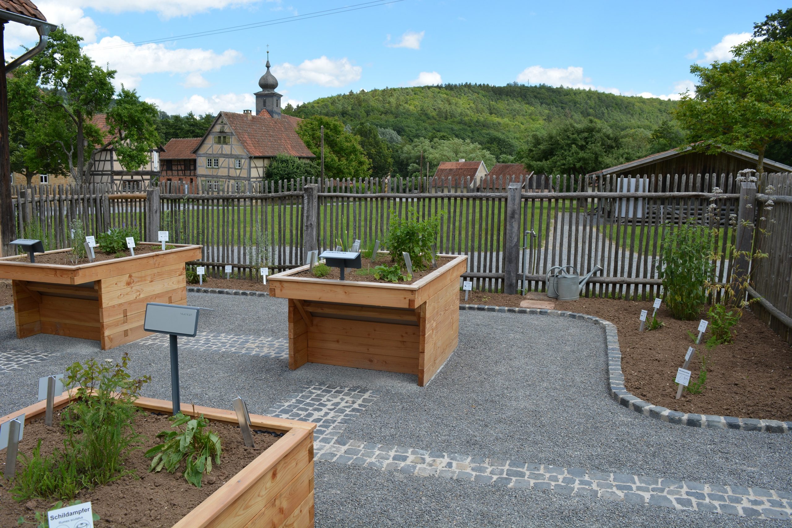 Hochbeete mit taktiler Beschilderung im Kräutergarten