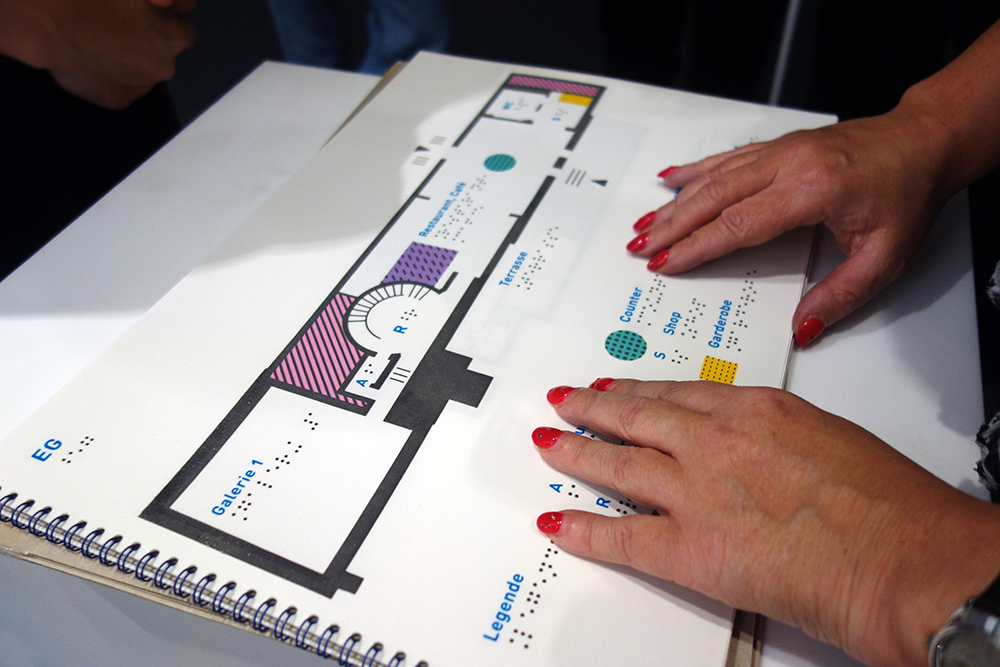 Ein taktiler Orientierungsplan zum mitnehmen in einer Galerie (Bild © schweizergestaltung)