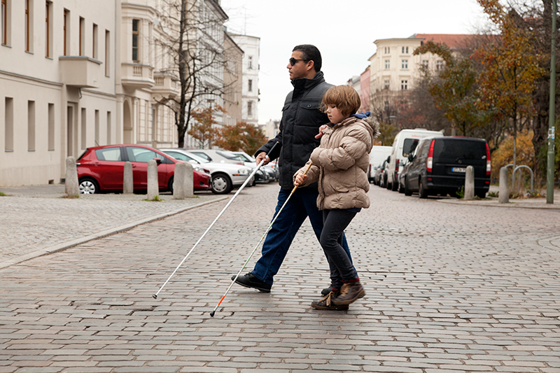 Der blinde Trainer Juan Ruiz mit einer seiner Schülerinnen beim Unterricht von Anderes Sehen e.V.
