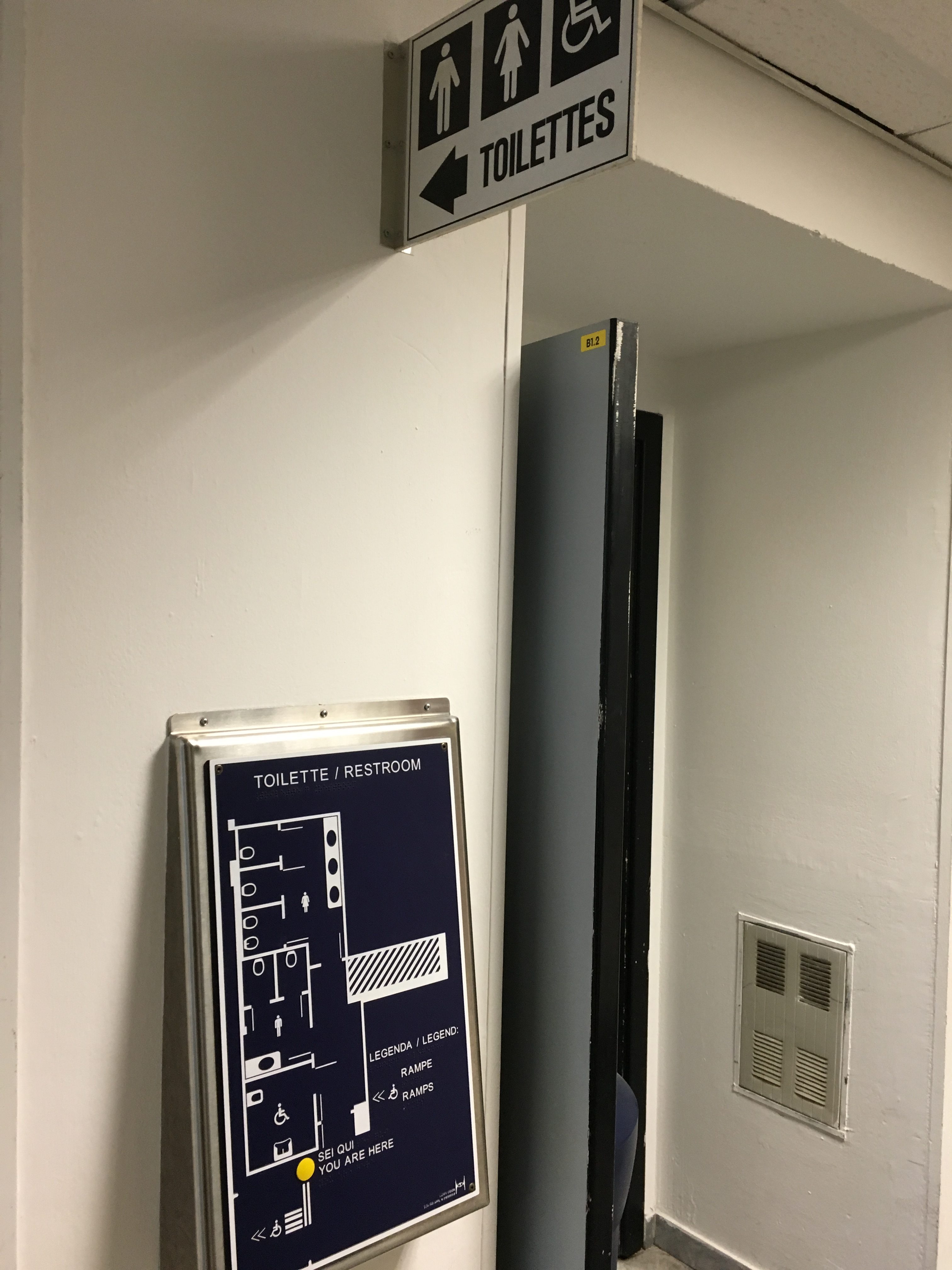 Taktier Orientierungsplan in einem Flughafen. Hier die Erklärung der Toiletten.