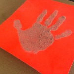 - Holzleim auf der Hand und dann Sand auf den Abdruck gestreut